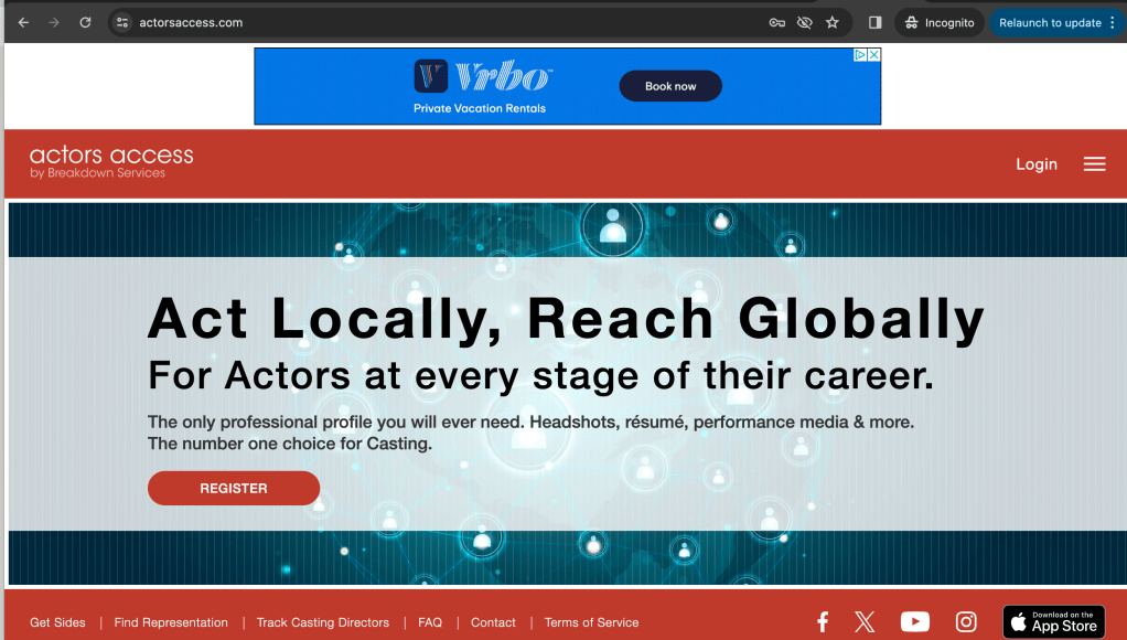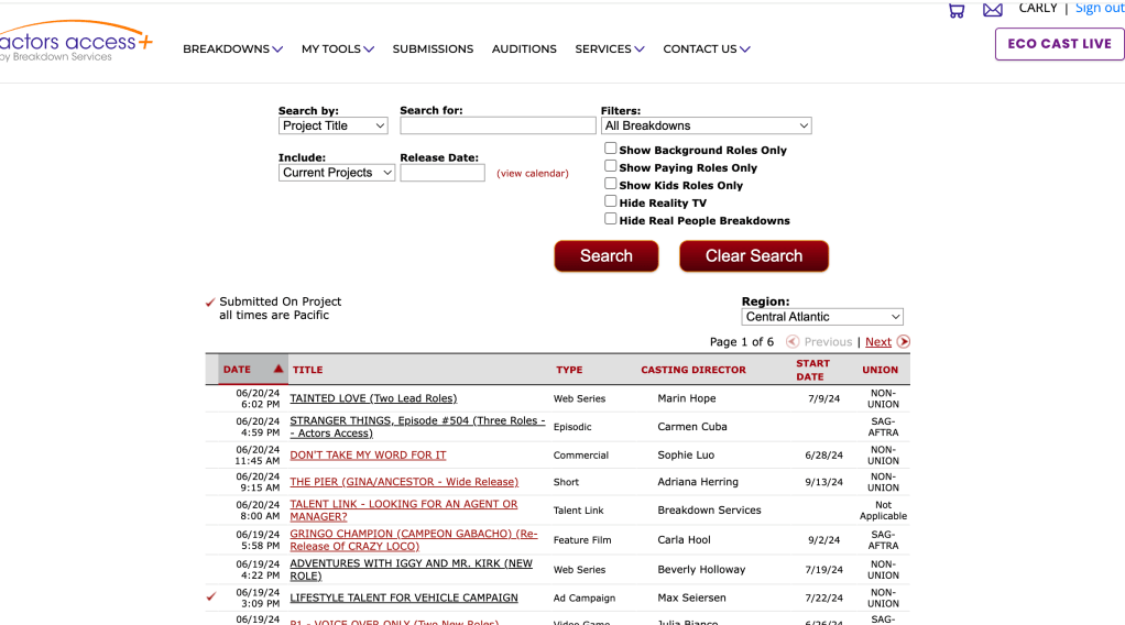 For YEARS, Breakdown Services has been THE method through which casting directors distribute information about the roles they’re casting. The company was founded in 1971, must have coded this site around 1995 and never looked back. Why? Because they’re coasting with $24 million on annual revenue, with hundreds of thousands of users and just 69 employees. And that’s not even counting the revenue or (supposedly) million+ users on Actors Access.